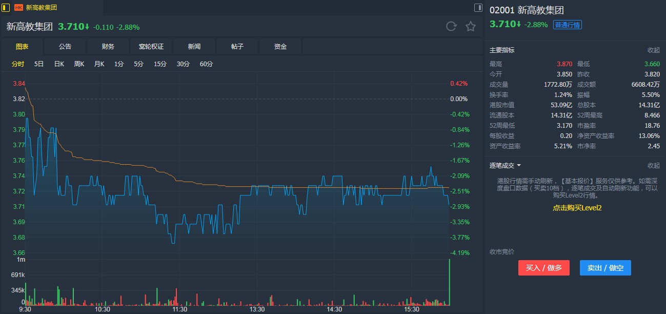 新高教日前公布,以先舊后新方式配售1.1億股,占擴(kuò)大后已發(fā)行股本約7.14%,每股配售價為3.57元,較上日收市價3.93元,折讓約9.2%。所得款項凈額預(yù)期約3.89億元,擬用作償還債務(wù)及一般企業(yè)用途。配售完成后,除承配人外的公眾股東持股比例,將由44.66%降至41.47%。
