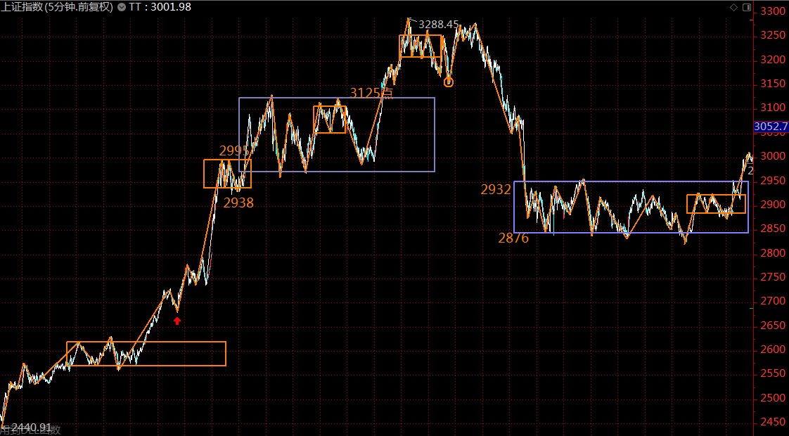 下圖為上證指數(shù)五分鐘級別走勢結(jié)構(gòu)。目前已正式突破5月6日開始構(gòu)建的三十分鐘中樞,目前在5分鐘的上漲趨勢中,未有結(jié)束的征兆,投資者宜全力做多,直至出現(xiàn)五分鐘上漲趨勢背馳為止,按壓力位看,大約在3050點附近。風險控制線2932點。