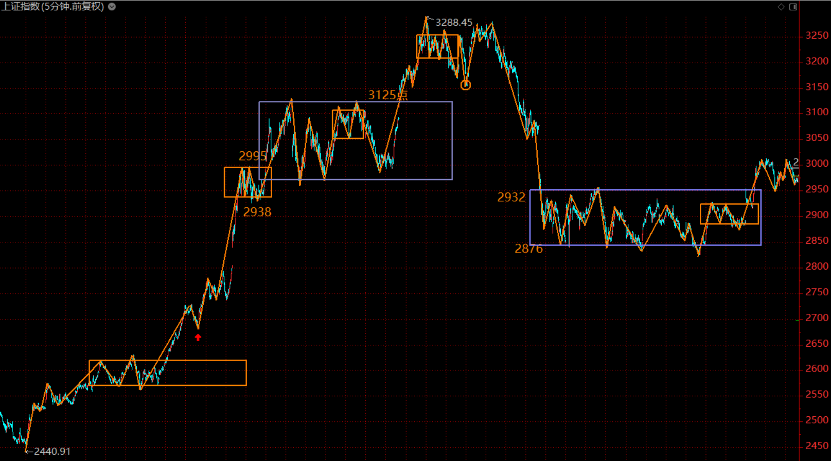 市場(chǎng)已進(jìn)入下跌趨勢(shì)的初期,本周初將會(huì)反彈,構(gòu)建五分鐘上漲趨勢(shì)的第二類賣點(diǎn),在3050附近沒有獲利了結(jié)的投資者,注意這次賣出良機(jī),降低倉(cāng)位以防范風(fēng)險(xiǎn)。耐心等待市場(chǎng)回到2900附近再行布局。