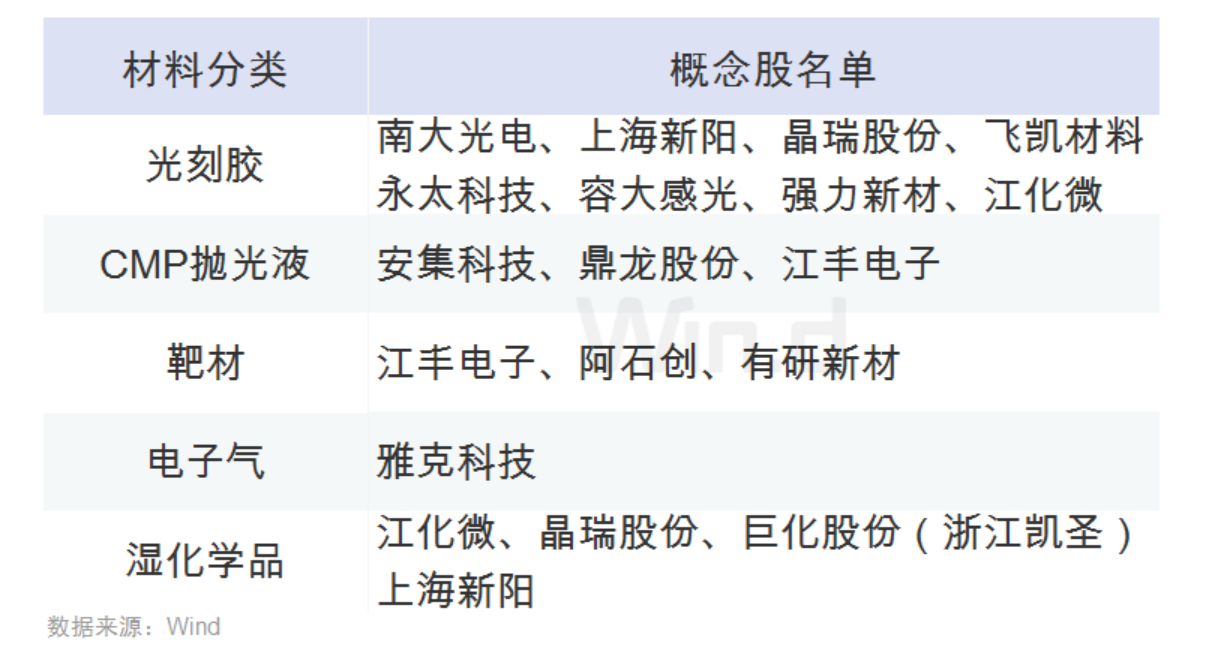 半導體材料相關(guān)A股:
