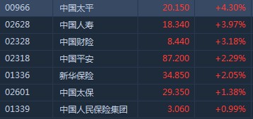 高盛指內(nèi)險股估值吸引吁買入 中國太平升逾4%領(lǐng)漲板塊