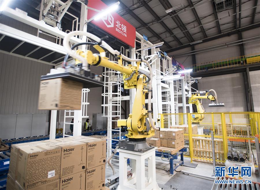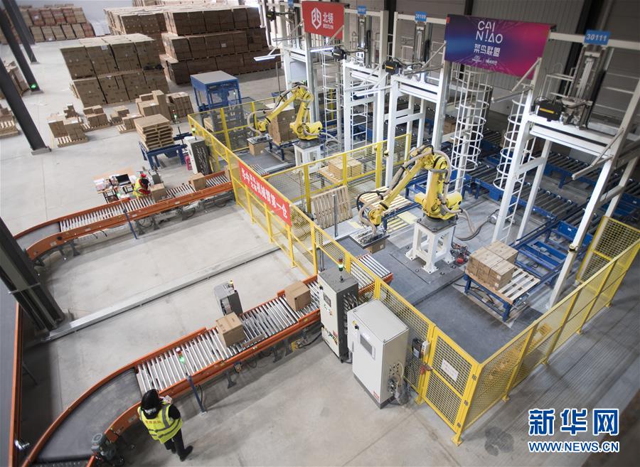 ??? 近日,在菜鳥網(wǎng)絡(luò)武漢黃陂物流倉(cāng)內(nèi),一組機(jī)械臂在進(jìn)行搬運(yùn)作業(yè)。近日,菜鳥網(wǎng)絡(luò)在湖北武漢黃陂物流倉(cāng)庫(kù)啟用智能機(jī)械臂來(lái)搬運(yùn)商品。據(jù)介紹,每組機(jī)械臂一個(gè)小時(shí)能搬運(yùn)1000件商品,可以24小時(shí)不間斷作業(yè)。這些機(jī)械臂的投入,有助于緩解高峰期貨物處理壓力,提高發(fā)貨速度,被工程師親切地稱為“麒麟臂”。新華社記者肖藝九攝