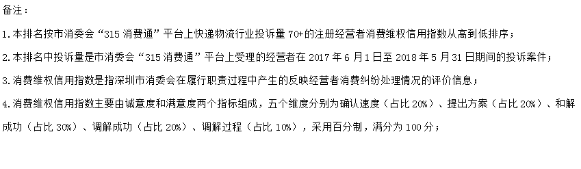 附:《深圳市快遞物流行業(yè)消費(fèi)維權(quán)信用指數(shù)排行榜》