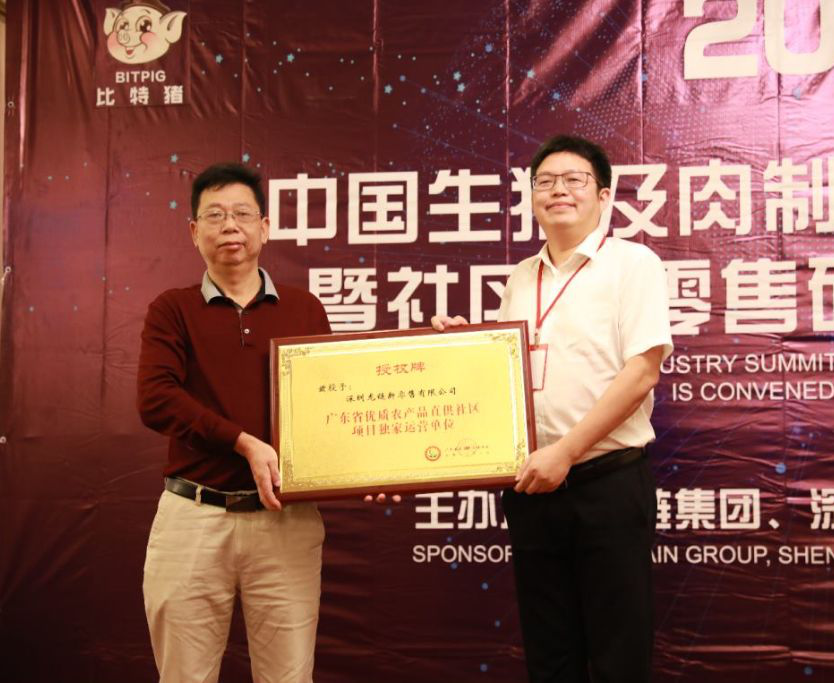 龍鏈集團(tuán)董事局主席、川豬集團(tuán)董事長、深圳龍鏈新零售有限公司董事長夏可,上臺接受了這項全廣東省獨家的授權(quán)牌,并發(fā)表感言:這既是廣東省委、省政府對深圳龍鏈新零售有限公司以區(qū)塊鏈、人工智能、物聯(lián)網(wǎng)等領(lǐng)域的高新科技,打造形成了生豬及肉制品等高品質(zhì)“菜籃子工程”系列產(chǎn)品的規(guī)?;?、專業(yè)化產(chǎn)供銷及商業(yè)平臺服務(wù)“一條龍”的肯定,也是一種鞭策——鞭策龍鏈人將自創(chuàng)的“比特豬”品牌穩(wěn)固為中國高端健康食品結(jié)合社區(qū)新零售領(lǐng)域的第一品牌,并不斷推動市民能夠以更便捷的方式與更良好的消費體驗,獲得高品質(zhì)的放心食品。