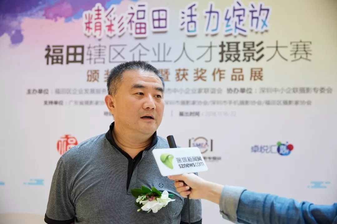 深圳中小企聯(lián)攝影專委會(huì)主席劉徽在采訪中表示:攝影是欲望與真實(shí)情感的抒發(fā),喜歡攝影的人就會(huì)學(xué)習(xí)藝術(shù)、學(xué)習(xí)美學(xué),而美學(xué)的原則就是理解為自身有深厚的生活積淀,憑著對攝影的熱愛和鉆研,豐富我們的人生。此次大賽的攝影作品水平很高,覆蓋面較廣,其中,有兩位協(xié)會(huì)外的攝影愛好者更是奪得金獎(jiǎng),憑借作品本身的對比,也讓我們對協(xié)會(huì)外更多攝影愛好者進(jìn)行了解,對我們本身也起到了非常強(qiáng)大的促進(jìn)作用,他相信,今后深圳福田轄區(qū)也將會(huì)有大量的優(yōu)秀愛好者和企業(yè)家們躋身其間,共同推進(jìn)福田轄區(qū)精神文化建設(shè)。