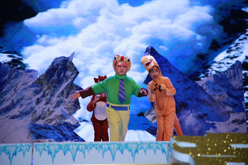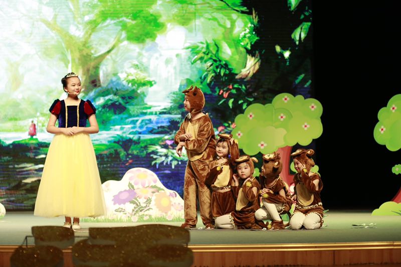 現(xiàn)場表演精彩紛呈,內(nèi)容積極向上,形式豐富多彩,表演生動(dòng)逼真,充分展示出選手們奮發(fā)向上的精神風(fēng)貌,同時(shí)也展現(xiàn)了選手們的外語實(shí)際運(yùn)用能力和自主創(chuàng)新精神?!度虬坠蔷贰ⅰ端廊恕?、《冰河世紀(jì)》、《獅子王》、《皇帝的新裝》、《白雪公主和七個(gè)小矮人》、《小紅帽》、《馬良的神筆》……一個(gè)個(gè)經(jīng)典的童話故事,惟妙惟肖的表演,生動(dòng)的詮釋著故事里的每一個(gè)角色,把觀眾帶入一個(gè)個(gè)美麗的童話世界。