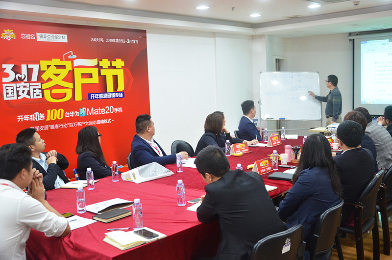 會(huì)議伊始,國安居副總經(jīng)理鄧劍峰對(duì)本次活動(dòng)具體優(yōu)惠內(nèi)容、活動(dòng)形式、宣傳方式以及力度等為大家進(jìn)行了詳細(xì)的部署,此次活動(dòng)不僅是行業(yè)新年首次活動(dòng),也是國安居2019年進(jìn)行新營銷手段的一次新嘗試,新突破,更是奠定影響年度營銷基調(diào)的關(guān)鍵,所以必須先行一步,贏在起點(diǎn),相信在2019年,銷售將會(huì)提升到一個(gè)新的高度,讓我們凝心聚力加油干!