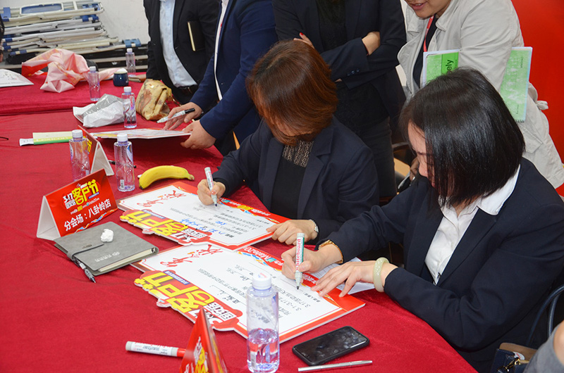 本次活動(dòng)深惠七店總紛紛發(fā)言表決心,承諾勢必將全力以赴辦好開年第一場萬人團(tuán)裝會(huì),給消費(fèi)者帶來更多的優(yōu)惠,提供更貼心的服務(wù),并在全員的見證下,簽訂了任務(wù)軍令狀。目標(biāo)已定,勢必達(dá)成。國安居的家人們用最飽滿的熱情,最熱血的狀態(tài)努力拼搏,確?!?·17客戶節(jié)”活動(dòng)圓滿成功。