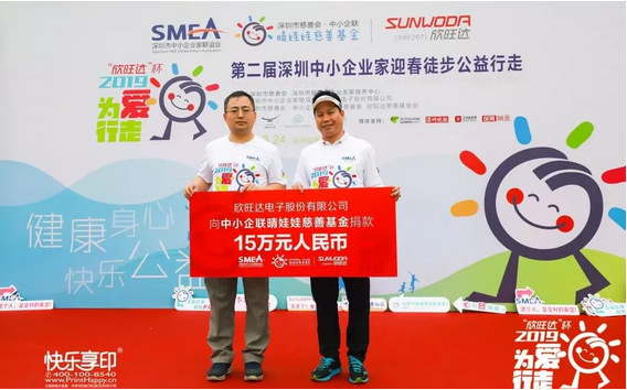 值得一提的是,本屆“為愛行走”活動(dòng)的愛心冠名企業(yè)——中小企聯(lián)常務(wù)副會(huì)長(zhǎng)、欣旺達(dá)電子股份有限公司董事長(zhǎng)王威現(xiàn)場(chǎng)向中小企聯(lián)晴娃娃慈善基金捐款15萬元人民幣,并對(duì)本次活動(dòng)提供了的全程贊助支持。