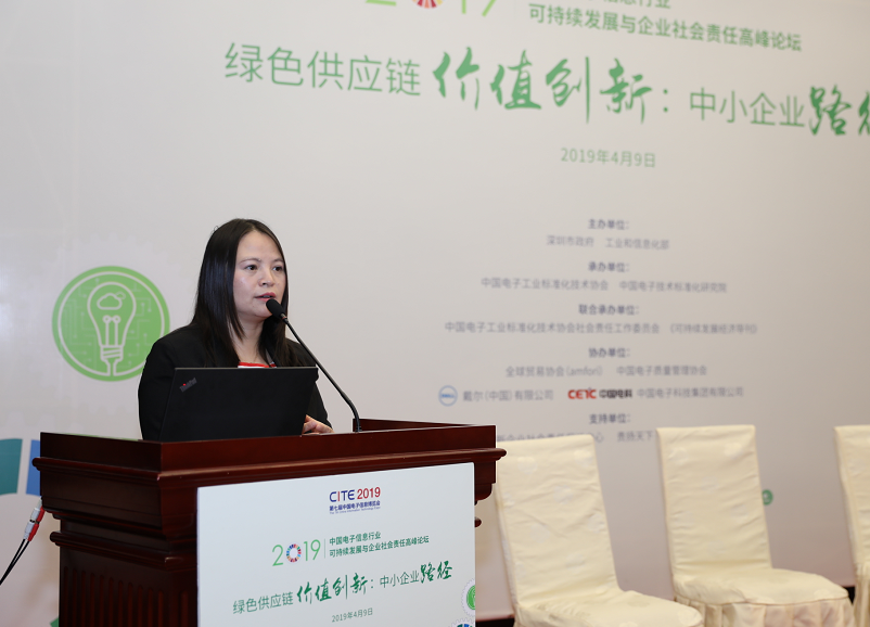 深圳新聞網(wǎng)4月10日訊 4月9日,“中國電子信息行業(yè)2019可持續(xù)發(fā)展與企業(yè)社會(huì)責(zé)任高峰論壇”在深圳會(huì)展中心成功舉行。本次會(huì)議由深圳市政府、工業(yè)和信息化部主辦,中國電子工業(yè)標(biāo)準(zhǔn)化技術(shù)協(xié)會(huì)、中國電子技術(shù)標(biāo)準(zhǔn)化研究院承辦,中國電子工業(yè)標(biāo)準(zhǔn)化技術(shù)協(xié)會(huì)社會(huì)責(zé)任工作委員會(huì)、《可持續(xù)發(fā)展經(jīng)濟(jì)導(dǎo)刊》(原《WTO經(jīng)濟(jì)導(dǎo)刊》)聯(lián)合承辦,全球貿(mào)易協(xié)會(huì)(amfori)、中國電子質(zhì)量管理協(xié)會(huì)、戴爾(中國)有限公司、中國電子科技集團(tuán)有限公司協(xié)辦,論壇還得到了深圳市創(chuàng)新企業(yè)社會(huì)責(zé)任促進(jìn)中心和責(zé)揚(yáng)天下(北京)管理顧問有限公司的大力支持。
