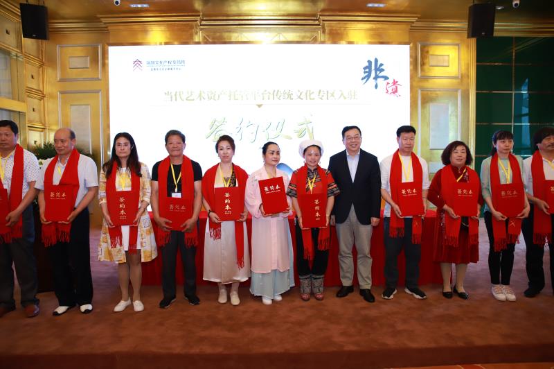 本次活動上,首批入駐當代藝術(shù)資產(chǎn)托管平臺傳統(tǒng)文化專區(qū)的20位國家級、省級非物質(zhì)文化遺產(chǎn)傳承人簽約入駐,深圳文交所將為簽約入駐的非遺傳承人提供專業(yè)化服務。