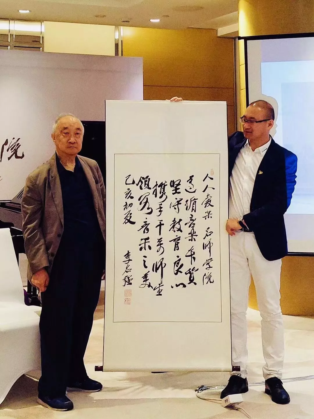 與會(huì)當(dāng)日,國(guó)際著名鋼琴家李名強(qiáng)教授、著名鋼琴家楊韻琳教授、中國(guó)音樂(lè)學(xué)院鋼琴系前主任張維教授、奧地利著名鋼琴家赫墨慈貝爾格教授等悉數(shù)出席,各位業(yè)界大咖發(fā)表了熱情洋溢的致辭,李明強(qiáng)教授還特意為本次活動(dòng)獻(xiàn)上個(gè)人墨寶,恭祝“人人愛(ài)樂(lè)·名師學(xué)院”的啟幕。