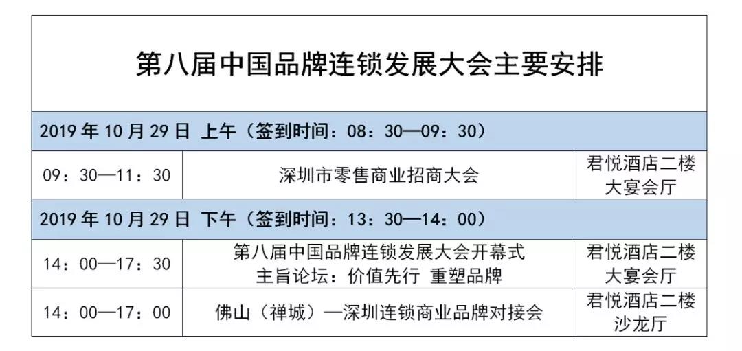 2019年10月29-30日,第八屆中國(guó)品牌連鎖發(fā)展大會(huì),“價(jià)值先行重塑品牌”等你來(lái)!