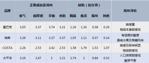 經(jīng)過(guò)四輪“盲喝”,在正面感官及風(fēng)味方面,星巴克美式在平衡維度評(píng)價(jià)最優(yōu),瑞幸美式在香氣和余韻兩個(gè)維度評(píng)價(jià)最優(yōu),太平洋美式在醇厚度維度評(píng)價(jià)最優(yōu)。