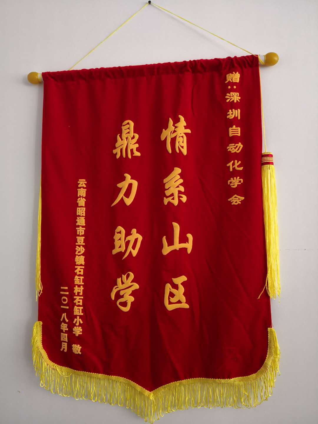 (學會收到被捐贈小學的錦旗)