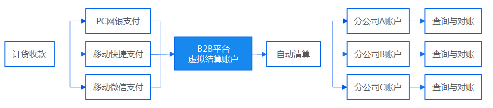 而在網(wǎng)站后臺,系統(tǒng)將自動進行一系列復雜操作:收款后直接根據(jù)預設好的規(guī)則,向負責廣東區(qū)域的分子公司付款,清分到各分子公司的賬戶。系統(tǒng)提供一套獨立賬戶體系,獨立結(jié)算、清分,收付款分子公司均有不同的查詢對賬后臺,集團總部也可以獨立匯總查詢。