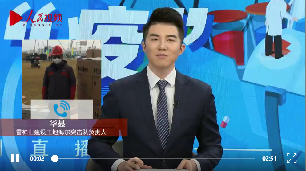 深圳新聞網(wǎng)2020年2月12日訊 近日,人民網(wǎng)、人民視頻特別直播節(jié)目《人民戰(zhàn)“疫”》在雷神山現(xiàn)場連線了來自海爾的突擊隊,向大家展現(xiàn)了一群晝夜駐扎建設一線的與時間賽跑者。