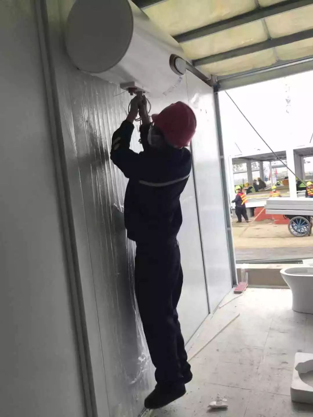 據(jù)了解,雷神山醫(yī)院工地上正在24小時不間斷地施工,現(xiàn)場每時每刻都在變化。目前,雷神山醫(yī)院的部分房間正在進行內(nèi)部裝修,海爾突擊隊的隊員在現(xiàn)場接受項目的統(tǒng)一指揮,2月4日,300臺熱水器設備按計劃全部安裝完成。