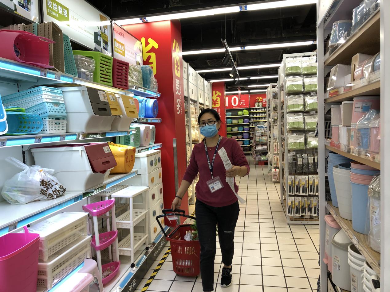“現(xiàn)在手上這個單有24個商品需要揀貨,這還不算大單,我們有接到過一單上百個商品的,還有總價超過3000元的訂單呢。家樂福梅林店的賣場面積大概是5000平方米,每天上下2層樓跑多少趟具體倒是沒有統(tǒng)計過,但像現(xiàn)在特殊時期,我們一天在網(wǎng)上接到的‘配送到家’服務(wù)訂單基本都要超過800單,有時候會到1000單?!?/p>