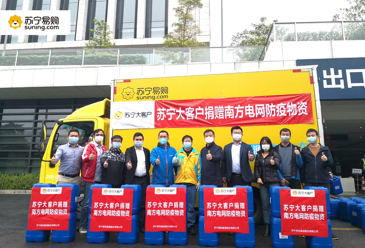 2月12日上午,為實(shí)現(xiàn)“共同戰(zhàn)疫”目標(biāo),助力南方電網(wǎng)保障民生,蘇寧大客戶(hù)聯(lián)合廣東華翼在廣州蘇寧物流園區(qū)內(nèi)為南方電網(wǎng)總部捐贈(zèng)100桶次氯酸鈉消毒液。在疫情面前,每個(gè)一線(xiàn)人員都在用自身行動(dòng)堅(jiān)定抗疫,蘇寧與供應(yīng)商伙伴也在用自身的力量為他們提供力所能及的保障。南方電網(wǎng)公司后勤管理中心總經(jīng)理文茂華、后勤管理中心安保部經(jīng)理韓忠輝、后勤管理中心綜合部負(fù)責(zé)人陳小練、主管陳世強(qiáng)一行代表南網(wǎng)接受捐贈(zèng)。