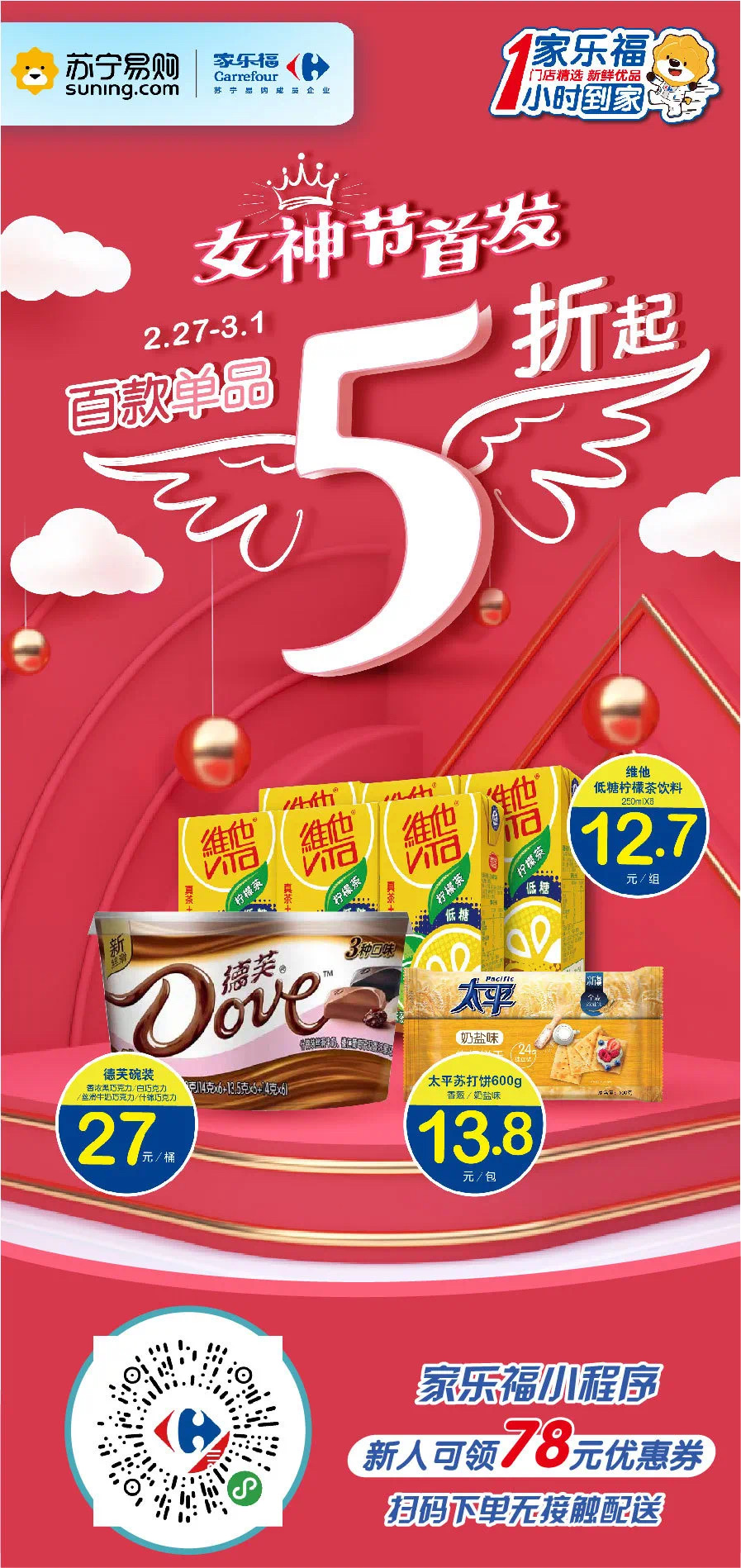 在這特殊的日子,與其等別人送禮,不如好好寵愛(ài)自己!2月27日至3月1日,僅限4天,家樂(lè)福小程序與您線上相約!您的外賣騎士已在路上,請(qǐng)及時(shí)簽收?。▍瞧G)