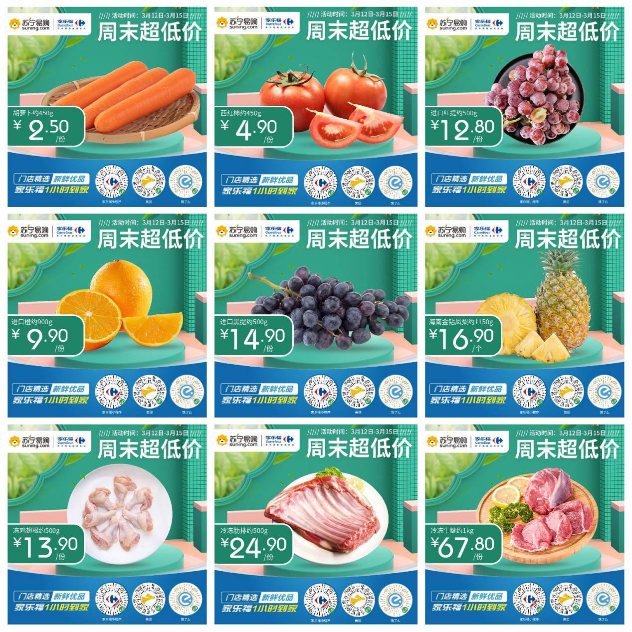 又到周末了,大伙兒再買點(diǎn)菜在家做做飯吧!家樂(lè)福生鮮招牌——“周末超低價(jià)”系列單品搶“鮮”看!胡蘿卜、西紅柿、橙子、黑提、紅提、金鉆鳳梨、雞翅根、肋排、牛腱,全方位滿足你挑剔的大“胃”口!