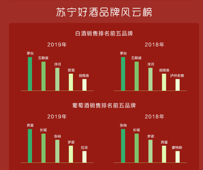 酒逢知己千杯少。2019年,蘇寧酒水好成績的取得,離不開與貴州茅臺、五糧液、洋河、今世緣、貴州習(xí)酒、百威英博等戰(zhàn)略合作品牌的緊密合作。