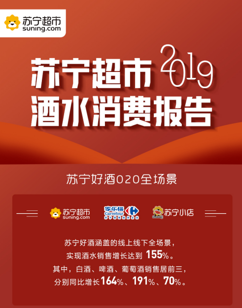 深圳新聞網(wǎng)2020年3月20日訊 昨日,蘇寧超市發(fā)布2019年度酒水消費報告。數(shù)據(jù)顯示,2019年,蘇寧好酒全渠道銷售同比增長155%。其中,白酒、啤酒、葡萄酒銷售分別同比增長164%、191%、70%。縱觀整年,家樂福、飛天茅臺酒、全場景等成2019年蘇寧酒水關(guān)鍵詞,這也進一步凸顯了蘇寧超市酒水生態(tài)圈建設(shè)的卓越成效。