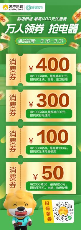 深圳蘇寧針對整個粵東區(qū)域投放近20萬張消費(fèi)券,該券根據(jù)可用產(chǎn)品類型分為400元、300元、100元、50元四種不同面值。消費(fèi)券以電子券為形式發(fā)放,消費(fèi)者可通過深圳蘇寧微信公眾號、深圳蘇寧官方微博、蘇寧云店小程序和蘇寧易購門店進(jìn)行領(lǐng)取,領(lǐng)取成功后,消費(fèi)券將自動存儲在消費(fèi)者的蘇寧會員賬戶中,使用時系統(tǒng)會根據(jù)購買的商品類別進(jìn)行自動適配和抵扣結(jié)算。