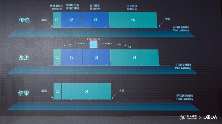 為了實現(xiàn)這個突破,智能本與E Ink原廠通力合作、聯(lián)合調(diào)優(yōu),在業(yè)界首次實現(xiàn)了墨水屏手寫處理芯片化(T1000芯片),直接將寫顯延遲中的軟件處理部分通過芯片實現(xiàn),大大的縮短了墨水屏的寫顯延遲。當(dāng)前,在咪咕訊飛智能本青春版中,寫顯延遲僅30毫秒左右。在用戶直接的主觀體驗測試中,已經(jīng)做到了“幾乎無延遲感”、“像真紙一樣的書寫速度”。