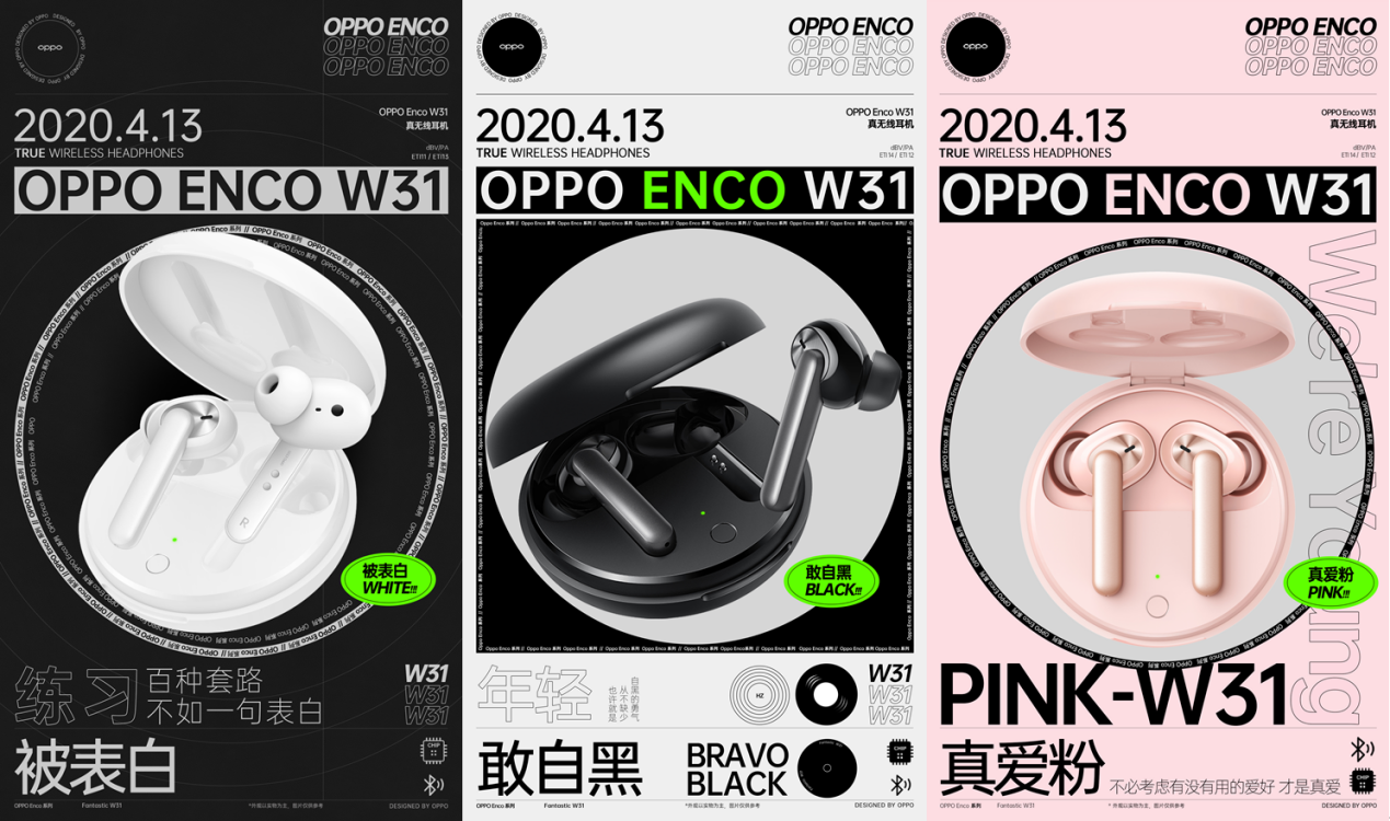 OPPO Enco W31真無線耳機(jī)將極簡(jiǎn)設(shè)計(jì)美學(xué)與前沿科技完美糅合,化身潮流好物。遵循簡(jiǎn)約小巧的設(shè)計(jì)理念,外殼圓潤(rùn)輕巧,方便用戶隨身攜帶。擁有敢自黑、被表白、真愛粉三種配色可供選擇,滿足年輕人不同個(gè)性的表達(dá)。
