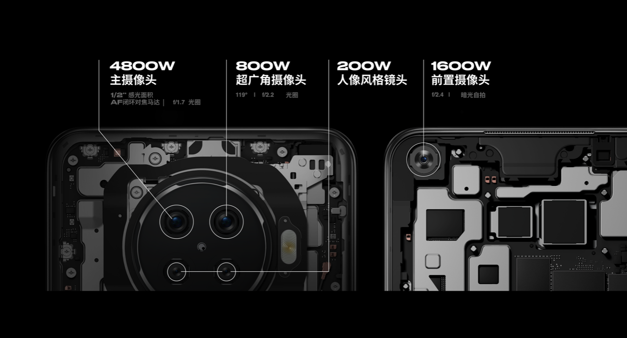 OPPO Ace2搭載了高清四攝影像系統(tǒng),分別為4800W超清主攝、800W超廣角鏡頭以及復古肖像風格與漏光人像風格鏡頭。4800W主攝可以通過超分辨率算法合成分辨率12032×9024的「億級像素」照片,1600W前置攝像頭支持超清夜景。在視頻拍攝方面,OPPO Ace2支持超清視頻防抖、超廣角視頻和智能視頻剪輯。