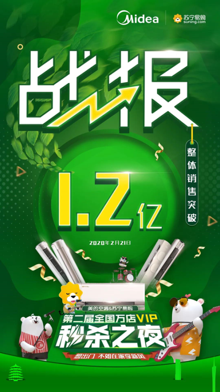 一季度受疫情影響,不僅消費需求受重創(chuàng),線下活動也受到?jīng)_擊。在此背景下,蘇寧美的迅速調整模式,發(fā)力直播秒殺、打通雙線銷售。2月21日,蘇寧聯(lián)合美的空調舉辦的第二屆“全國萬店微信秒殺之夜”結合直播和微信秒殺,整體銷售突破1.2億。4月,雙方不僅邀請到“好物推薦官”柳巖帶貨,更推出“百強星主播大賽”,借助直播平臺將門店優(yōu)質導購培養(yǎng)成帶貨達人,再為家電營銷啟發(fā)新思路。
