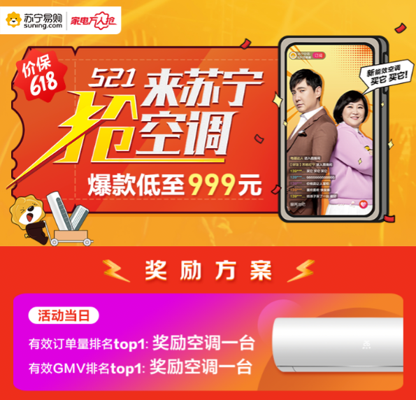 此外,此次搶空調(diào)期間,蘇寧還將以“萬(wàn)人帶貨王”的帶單獎(jiǎng)勵(lì)活動(dòng),依托蘇寧推客、蘇小團(tuán)等社交平臺(tái),邀請(qǐng)廣大網(wǎng)友為空調(diào)帶貨。多款熱銷(xiāo)空調(diào)均設(shè)有高傭金獎(jiǎng)勵(lì),實(shí)際帶單數(shù)量最多和帶單數(shù)額最高的“帶貨王”均可獲得1臺(tái)空調(diào)作為獎(jiǎng)勵(lì)。