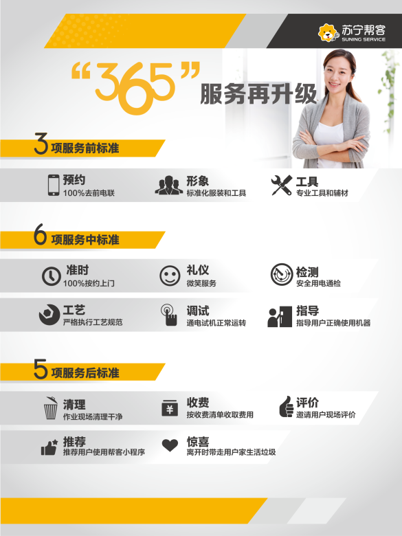 在用戶關(guān)心的收費問題上,蘇寧幫客服務(wù)推行明碼標價、合理化收費。針對行業(yè)亂象,為了保障廣大用戶家電售后服務(wù)體驗,蘇寧幫客承諾家電安裝維修“多收費,雙倍賠”。各品類家電安裝維修中,經(jīng)核實屬于多收費的部分,雙倍賠償。蘇寧幫客在蘇寧易購網(wǎng)站上對詳細價格表進行公示,工程師也會隨身攜帶價格表,廣大消費者隨時可查詢。