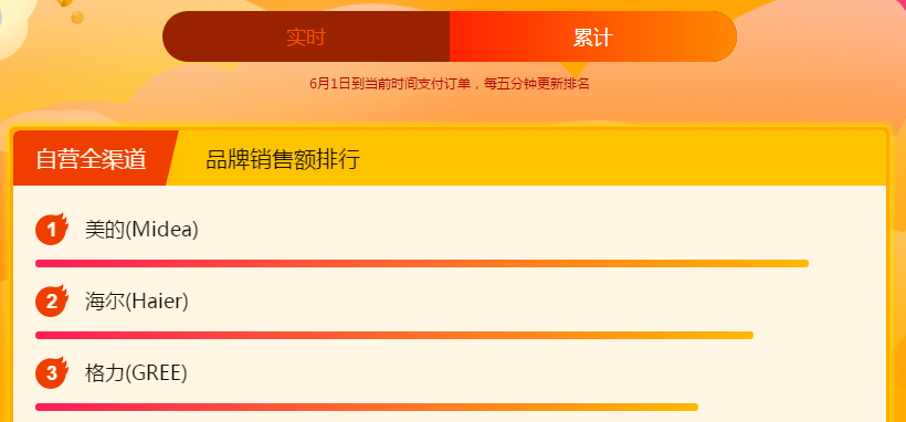與此同時,頭部品牌在蘇寧全渠道銷售暴增。截至當(dāng)日16時,美的、海爾、格力占據(jù)品牌銷售額前三席位。其中,美的以品牌銷量、品牌銷售額、品牌加購人數(shù)三冠的成績領(lǐng)跑榜單,同時橫跨空調(diào)、冰洗、品質(zhì)廚電等多品類品牌TOP榜,成為最大贏家。