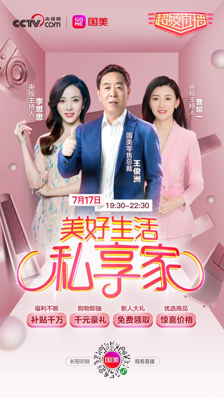 據(jù)了解,7月17日晚19:30,國美將再度攜手央視網(wǎng),共同打造以“美好生活私享家”為主題的超級(jí)直播。國美零售網(wǎng)紅總裁王俊洲再現(xiàn)江湖,央視主持人李思思、曹煊一助陣“砍價(jià)”。此外,“國美小虎”也將帶著多款家電和日用熱銷商品現(xiàn)身直播間,為消費(fèi)者帶來更多優(yōu)惠。用戶可通過央視網(wǎng)抖音號(hào)、國美微信小程序、拼多多國美官方旗艦店、京東國美官方旗艦店實(shí)時(shí)在線觀看。
