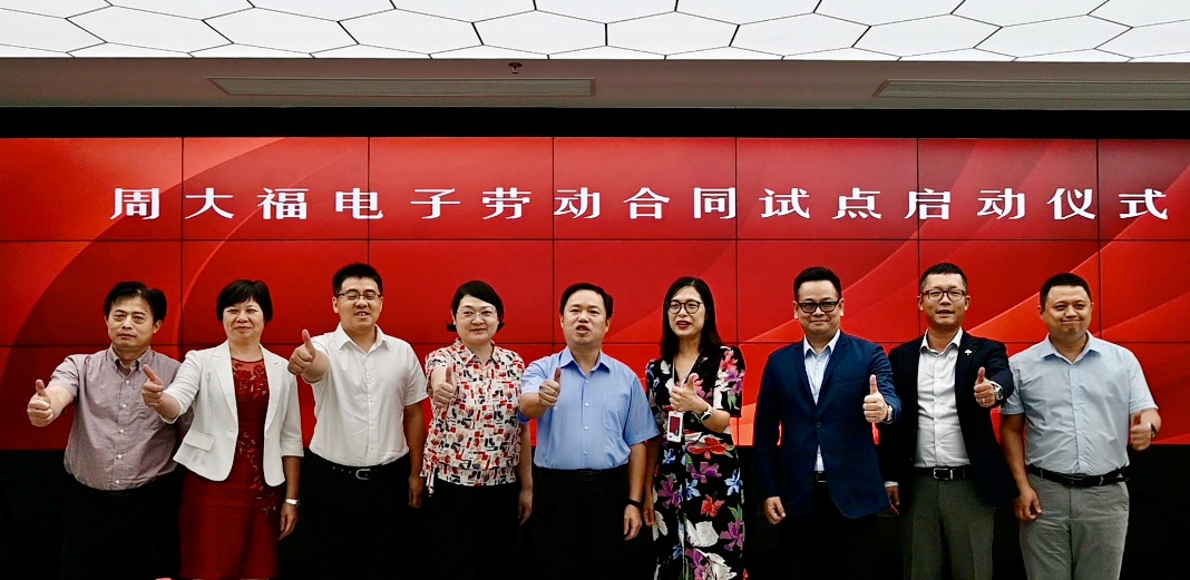 見(jiàn)圳客戶端·深圳新聞網(wǎng)2020年7月29日訊(記者蔡凱伊) 今日,國(guó)家首家試點(diǎn)工作——“周大福電子勞動(dòng)合同試點(diǎn)項(xiàng)目”項(xiàng)目啟動(dòng)會(huì)于深圳鹽田周大福集團(tuán)大廈舉行。在政府主管部門(mén)、深圳法大大網(wǎng)絡(luò)科技有限公司 、商業(yè)合作伙伴等各界人士的共同見(jiàn)證下,“創(chuàng)新勞動(dòng)合同管理機(jī)制”的唯一入選項(xiàng)目,正式于周大福實(shí)行首家試點(diǎn)。