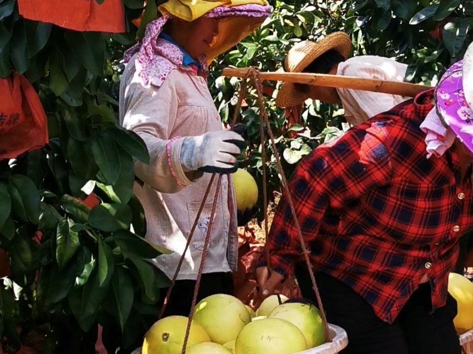 梅州果農(nóng)忙于采摘新產(chǎn)季蜜柚,通過京喜產(chǎn)地直發(fā)到消費者家里