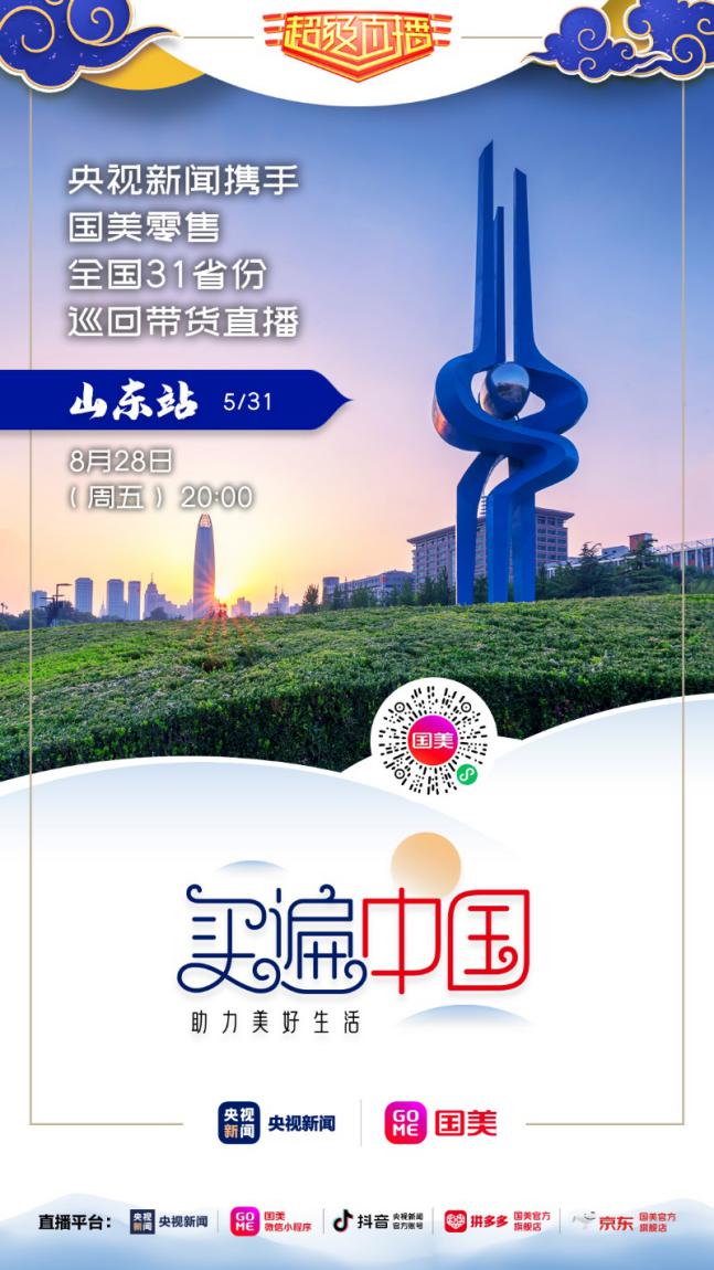 8月28日晚20點(diǎn),記得鎖定國(guó)美微信小程序、拼多多國(guó)美官方旗艦店、京東國(guó)美官方旗艦店,及央視新聞的客戶端、抖音號(hào),“買遍中國(guó)”山東站直播間,一起來(lái)看“央視大 boy”康輝帶貨狂奔?。ǔ\娖剑?/p>