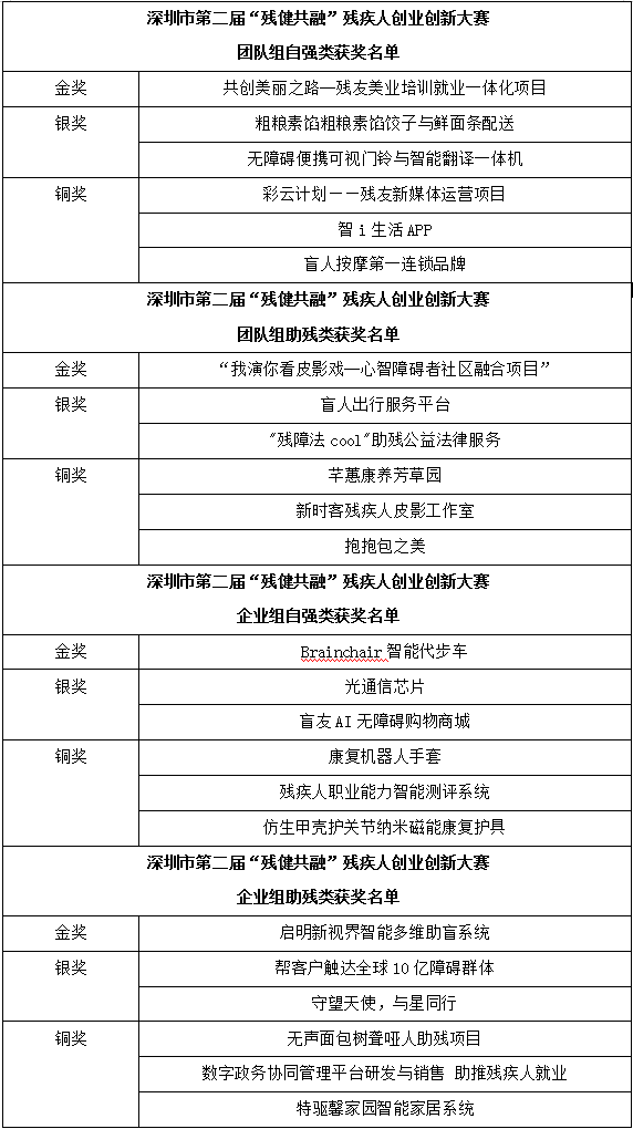 賽場上,晉級決賽的24位參賽選手以智慧和勇氣征服全場,自強(qiáng)者超越自我,助殘者大愛無疆,一次次精彩的路演和答辯,分享自己的才華與夢想?,F(xiàn)場5位專家評委嚴(yán)肅認(rèn)真、公平公正評審,并對創(chuàng)業(yè)者給予專業(yè)細(xì)致的指導(dǎo)和幫助。經(jīng)過激烈角逐,最終團(tuán)隊(duì)組自強(qiáng)類《共創(chuàng)美麗之路--殘友美業(yè)培訓(xùn)就業(yè)一體化項(xiàng)目》、團(tuán)隊(duì)組助殘類《“我演你看皮影戲--心智障礙者社區(qū)融合項(xiàng)目”》、企業(yè)組自強(qiáng)類《Brainchair智能代步車》、企業(yè)組助殘類《啟明新視界智能多維助盲系統(tǒng)》斬獲金獎。