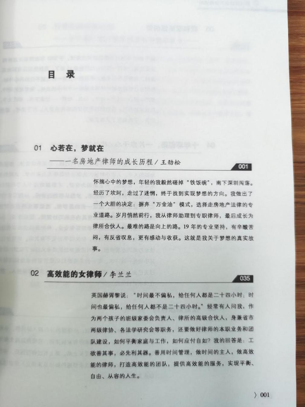 該書真實(shí)的披露了九位律師專業(yè)成長的故事和鮮為人知的心路歷程。這九位律師中,有毅然放棄“鐵飯碗”只身闖深圳,成為房地產(chǎn)專業(yè)律師的王勁松;有不甘于平淡生活,由一名普通公務(wù)員轉(zhuǎn)變?yōu)槭聵I(yè)家庭兩不誤的女律師李蘭蘭;有熱心公益、筆耕不輟,無私貢獻(xiàn)社會價(jià)值的陳偉;有從對自然的熱愛到最終選擇環(huán)保法律專業(yè)的陳旭緋;有跨行轉(zhuǎn)入歷經(jīng)挫折,從家事律師到家族律師的杜芹;有從非法本畢業(yè)生入行時(shí)的迷茫到如今篤定、睿智的羅振輝;有堅(jiān)守刑事辯護(hù),鉆研、開拓十幾年如一日的黃云;有知行合一熱衷勞動法律的團(tuán)隊(duì)帶頭人曾凡新;有赴美求學(xué)不忘初心,長期耕耘涉外法律服務(wù)的潘立冬。