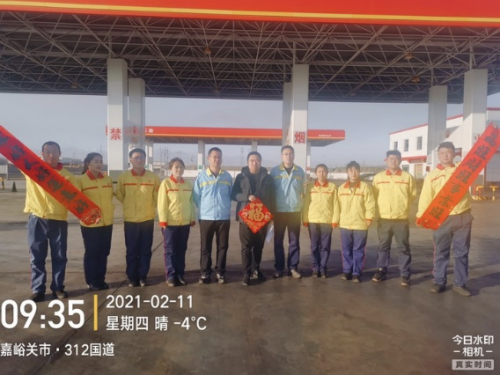 甘肅嘉峪關(guān),加油員們收到能鏈送來的保溫杯和“?!弊?/span>
