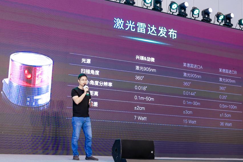 接下來進(jìn)入到發(fā)布會(huì)重磅內(nèi)容環(huán)節(jié),首先,勱微機(jī)器人CEO陳文成在會(huì)上宣布了勱微聯(lián)合興頌研發(fā)的激光雷達(dá),這款激光雷達(dá)具有優(yōu)異的性能,即使在5%反射率的環(huán)境下,依然可以有50m的檢測距離,同時(shí)還具備非常穩(wěn)定的持續(xù)輸出,且精度保持在±2mm,較同行的±10mm更精準(zhǔn)。