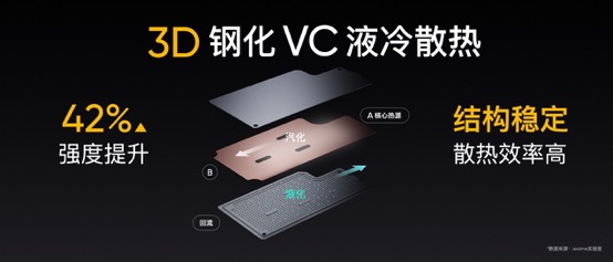 真我GT的性能表現(xiàn),離不開優(yōu)秀散熱技術(shù)的強(qiáng)力支持,創(chuàng)新的3D鋼化液冷散熱不乏好評。作為GT系列戰(zhàn)略成員,真我GT Neo繼承了GT系列的強(qiáng)悍基因,同樣搭載3D鋼化VC液冷散熱。創(chuàng)新的3D鋼化VC液冷散熱不僅大幅度提高了均熱板的強(qiáng)度,同時(shí)內(nèi)部的結(jié)構(gòu)優(yōu)化也讓整體的散熱效率進(jìn)一步提升。配合100%覆蓋核心發(fā)熱源的多重立體散熱系統(tǒng),高性能的同時(shí)保持冷靜。
