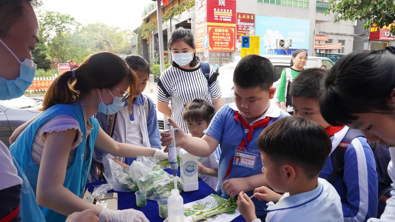 “檢測出沒有問題后,我就能放心給小孫女吃了?!被顒?dòng)現(xiàn)場,看到快檢工作人員在對(duì)各類食品進(jìn)行快檢演示,買菜路過的居民紛紛將購買的蔬菜送往快檢。