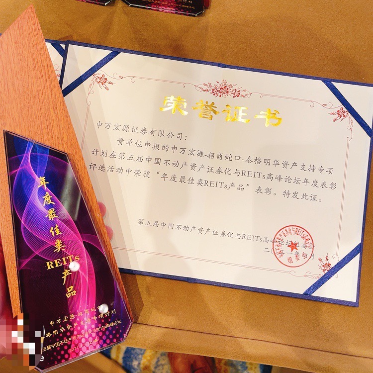 與招商蛇口申報基礎設施公募REITs同時,由中國房地產(chǎn)業(yè)協(xié)會聯(lián)合中國REITs聯(lián)盟等主辦的“第五屆中國不動產(chǎn)資產(chǎn)證券化與REITs高峰論壇”上,憑借申萬宏源-招商蛇口-泰格明華資產(chǎn)支持專項計劃,招商蛇口獲評為“最佳原始權益人”,泰格明華項目獲得“年度最佳類REITs產(chǎn)品”獎項。