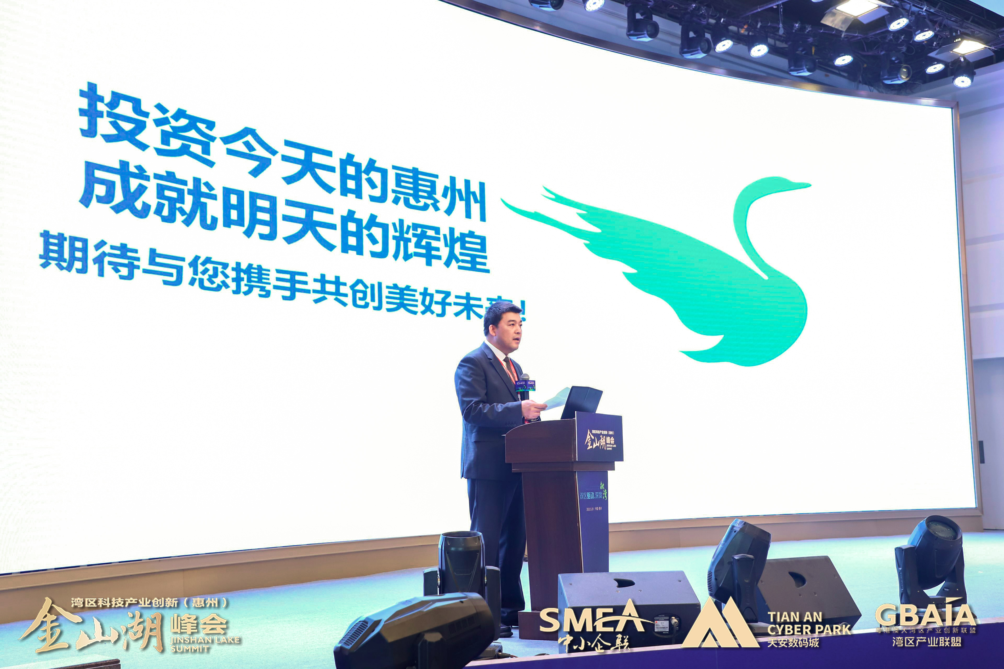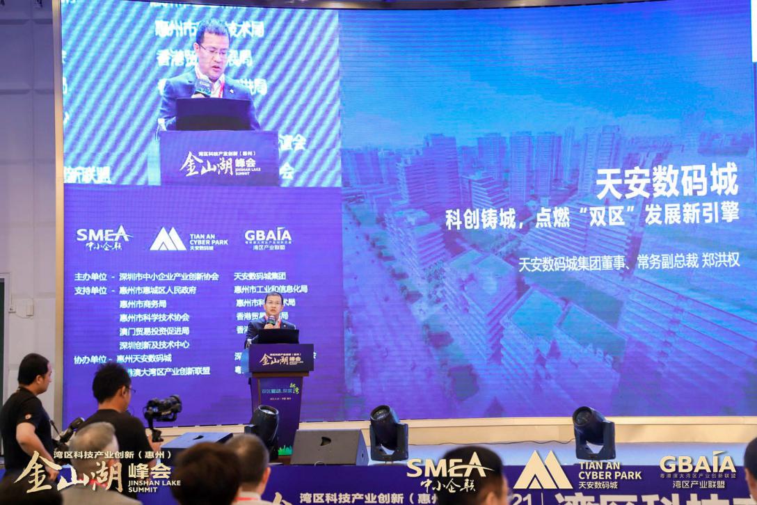 “‘雙區(qū)’建設(shè)是國(guó)家領(lǐng)導(dǎo)人和黨中央部署的重大國(guó)家戰(zhàn)略,作為粵港澳大灣區(qū)重要節(jié)點(diǎn)和深圳都市圈重要成員,全力支持、積極融入既是惠州鮮明的政治態(tài)度,也是惠州發(fā)展的必然抉擇。相信在惠州市及各級(jí)政府部門支持下,深圳市中小企業(yè)產(chǎn)業(yè)創(chuàng)新協(xié)會(huì)、天安數(shù)碼城集團(tuán)強(qiáng)強(qiáng)攜手,與各方合作伙伴共同努力,通過每年一屆的“灣區(qū)產(chǎn)業(yè)創(chuàng)新(惠州)金山湖峰會(huì)”深入落實(shí)創(chuàng)新驅(qū)動(dòng)發(fā)展戰(zhàn)略,匯聚粵港澳大灣區(qū)產(chǎn)業(yè)創(chuàng)新資源,深化粵港澳創(chuàng)新合作,助力惠州與灣區(qū)城市間的產(chǎn)業(yè)創(chuàng)新與協(xié)同發(fā)展。