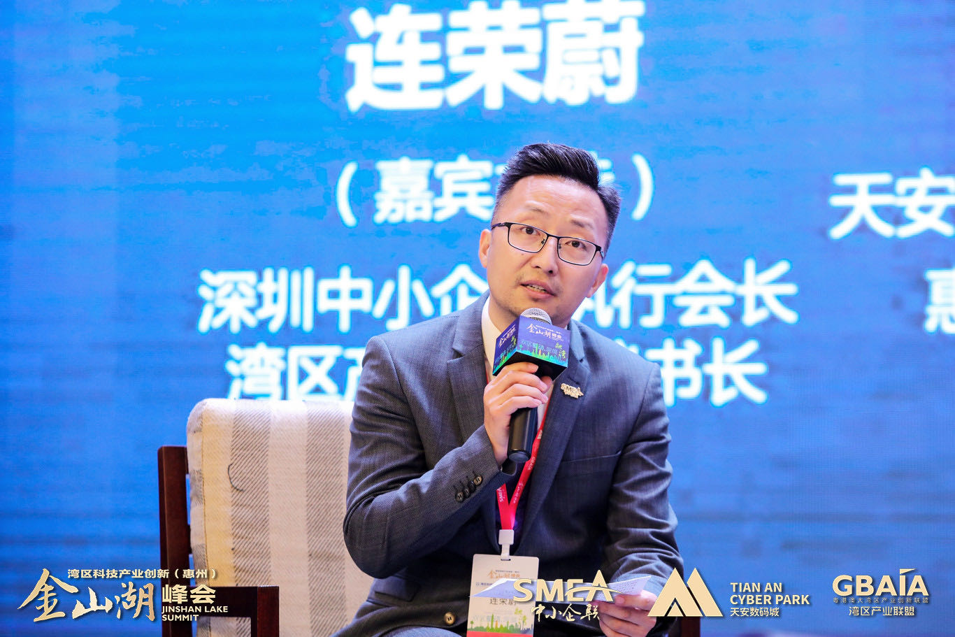 深圳中小企聯(lián)執(zhí)行會(huì)長(zhǎng)、灣區(qū)產(chǎn)業(yè)聯(lián)盟秘書長(zhǎng)連榮蔚主持論壇環(huán)節(jié)