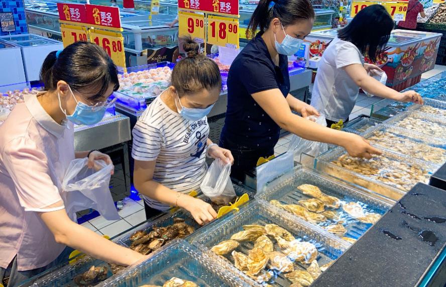 (圖:顧客在家樂福深圳紅寶店內(nèi)選購海鮮產(chǎn)品)